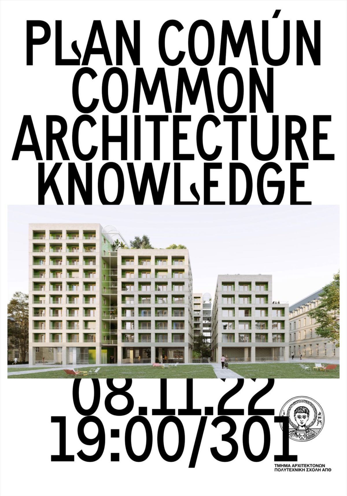 ΑΠΘ : Διάλεξη / Plan Comun, Felippe de Ferrari, Kim Courreges / Common Architecture Knowledge / Κοινή Αρχιτεκτονική Γνώση / Τρίτη, 8/11, 7μμ, αίθουσα 301