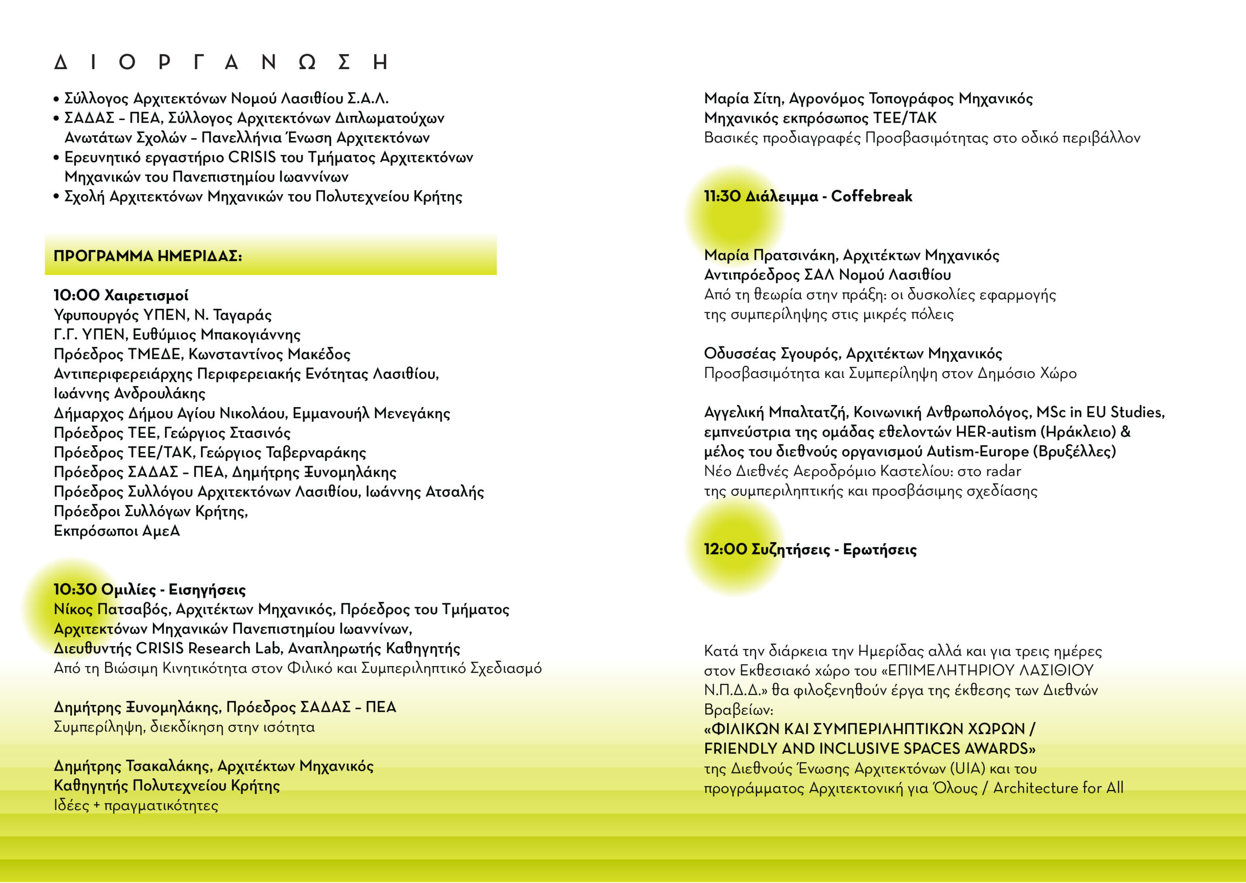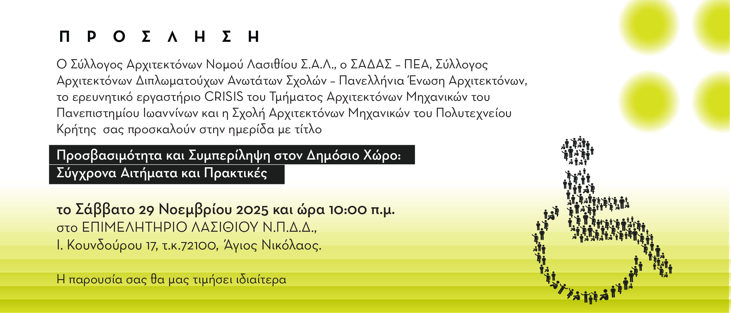 Ημερίδα: «Προσβασιμότητα και Συμπερίληψη στον Δημόσιο Χώρο: Σύγχρονα Αιτήματα και Πρακτικές», Επιμελητήριο Λασιθίου, Άγιος Νικόλαος, Σάββατο 29 Νοεμβρίου 2025
