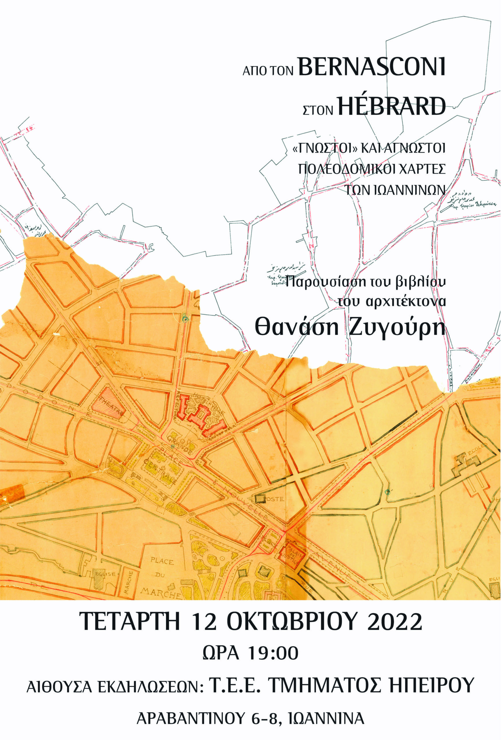 με τίτλο «Από τον Bernasconi στον Hebrard. “Γνωστοί” και άγνωστοι Πολεοδομικοί Χάρτες των Ιωαννίνων».
