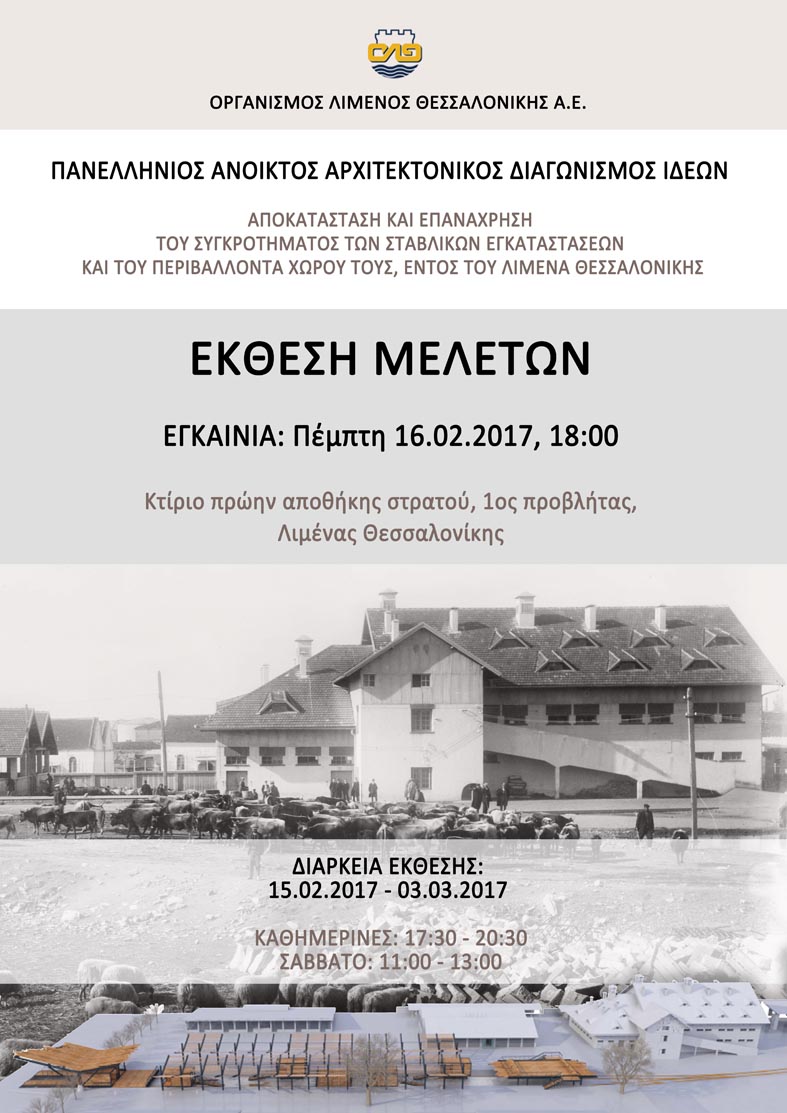 Πρόσκληση στα Εγκαίνια Έκθεσης των μελετών του Ανοικτου Αρχιτεκτονικού Διαγωνισμού Ιδεών “Αποκατάσταση και επανάχρηση του συγκροτήματος των Σταβλικών Εγκαταστάσεων και του περιβάλλοντος χώρου τους, εντός του λιμένα Θεσσαλονίκης”